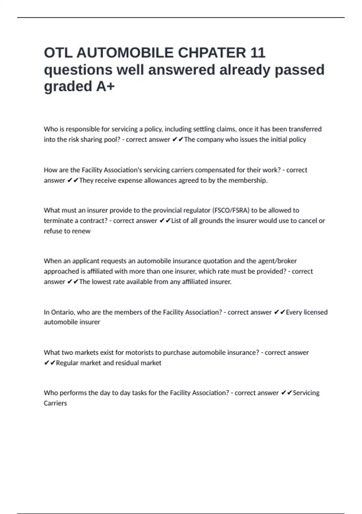 In Ontario, who are the members of the Facility Association? - correct answer ✔✔Every licensed
