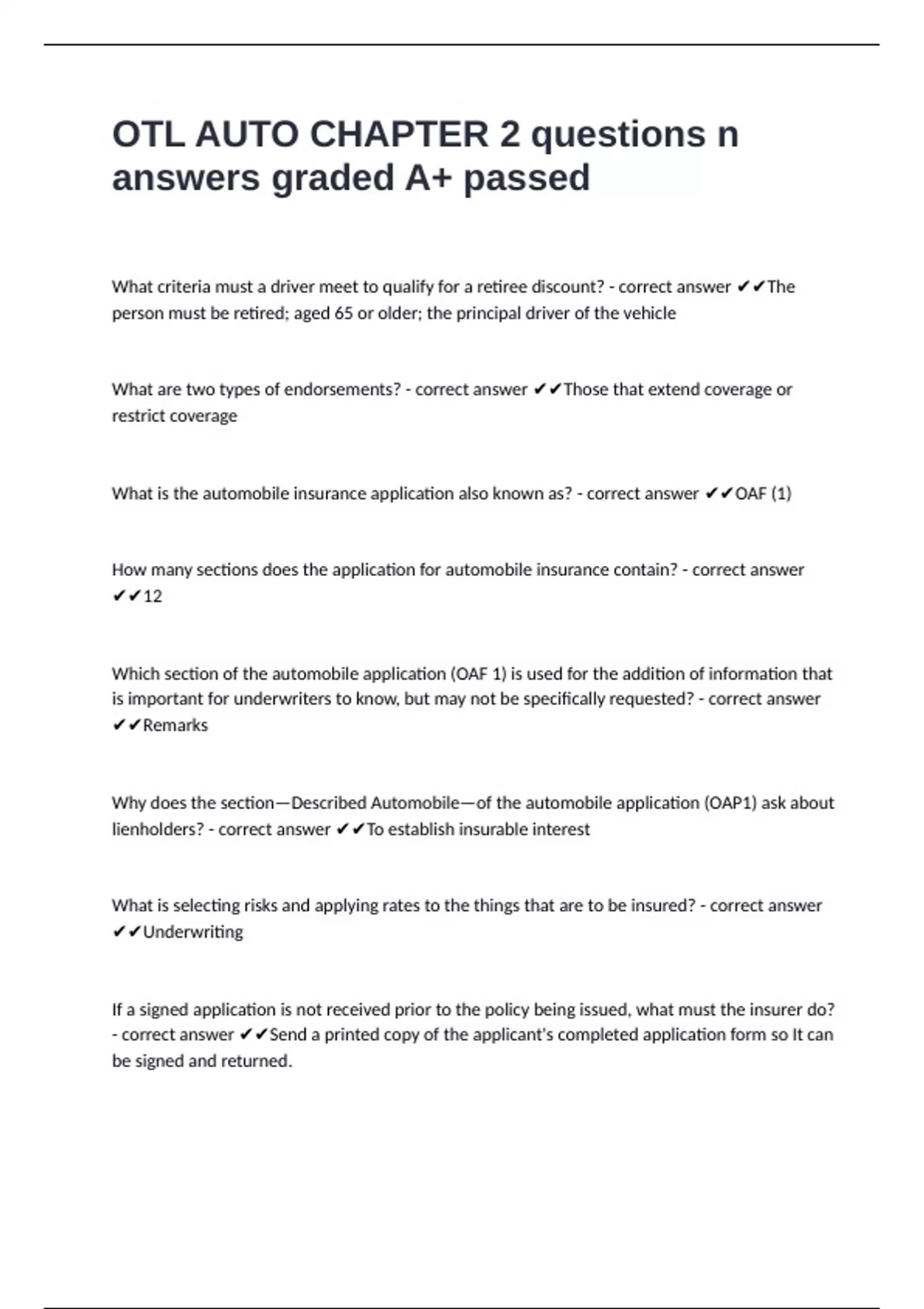 OTL AUTO CHAPTER 2 questions n answers graded A+ passed