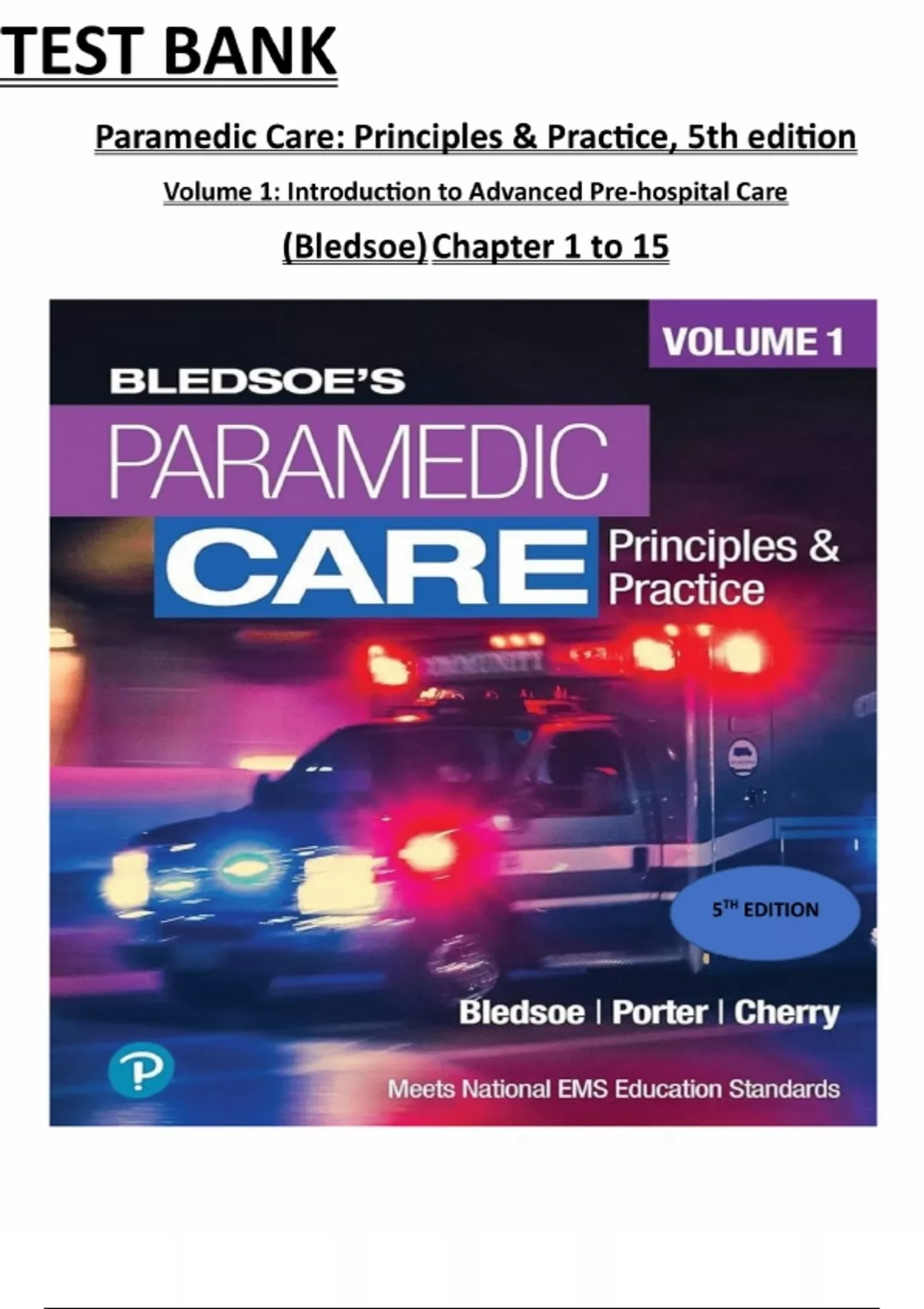 TEST BANK FOR PARAMEDIC CARE PRINCIPLES AND PRACTICE 5TH EDITION VOLUME 1 BY BLEDSOE