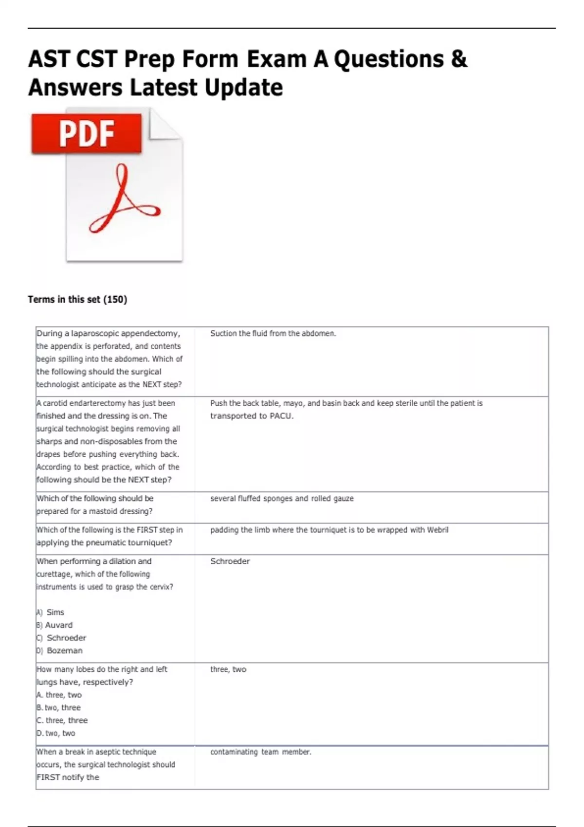 AST CST Prep Form Exam A Questions & Answers Latest Update