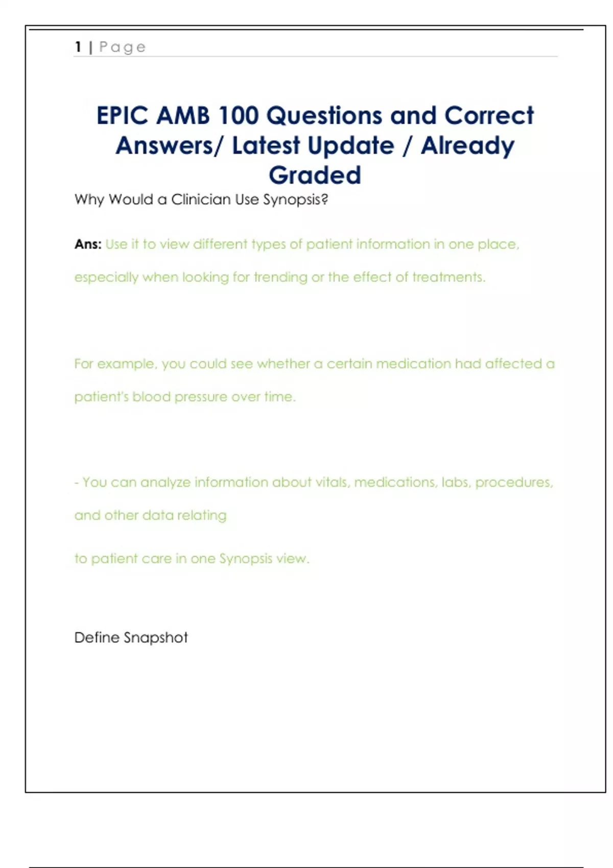 Ans: Purpose: Get a quick, specialty‐based patient overview.