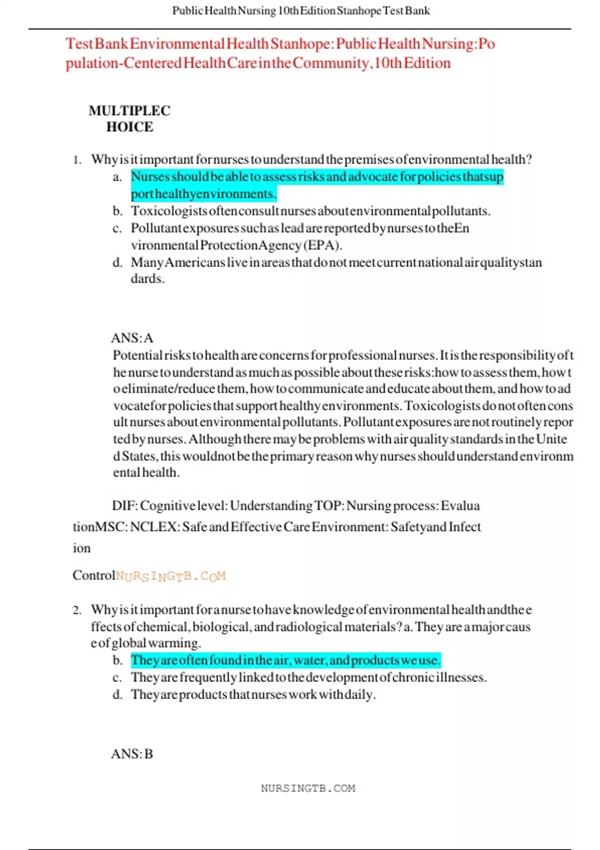Test Bank Environmental Health Stanhope: Public Health Nursing:Po