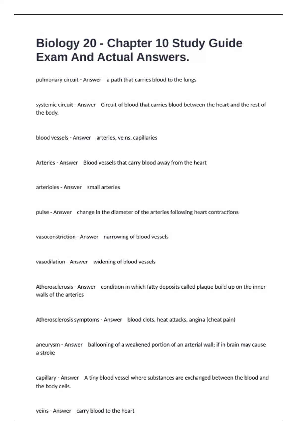 Arteries - Answer Blood vessels that carry blood away from the heart
