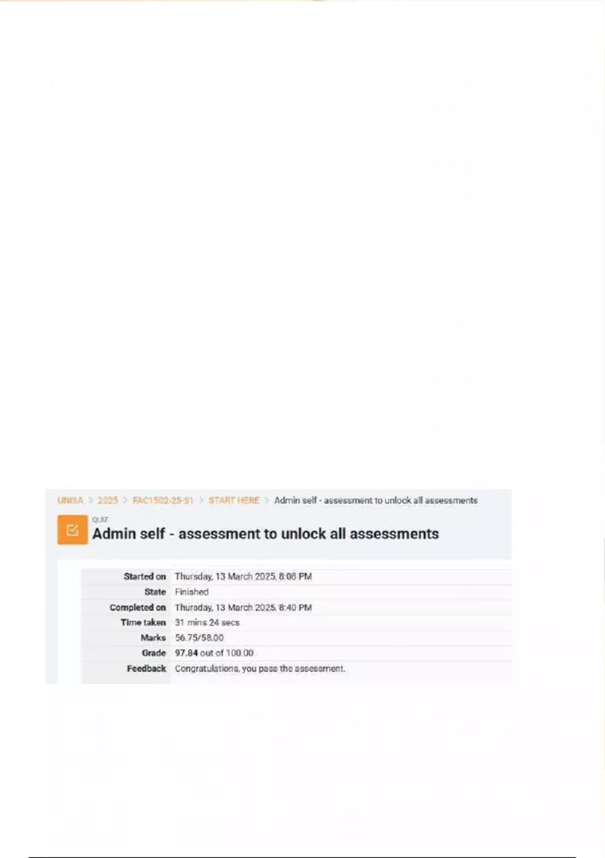 FAC1502 Admin self - assessment to unlock all assessments Semester 1 2025 DUE 27 March 2025.