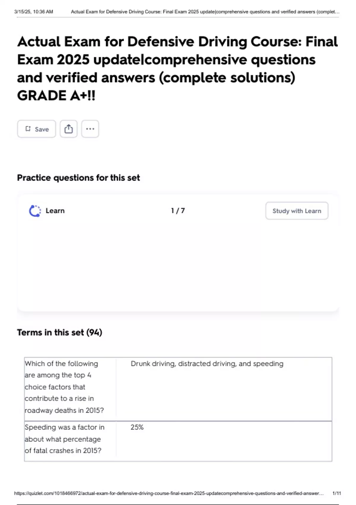 , 3/15/25, 10:36 AM Actual Exam for Defensive Driving Course: Final Exam 2025 update|comprehensive questions and verified answers (complet…