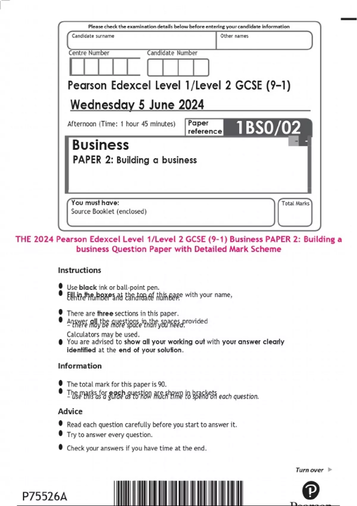 THE 2024 Pearson Edexcel Level 1/Level 2 GCSE (9–1) Business PAPER 2: Building a business Question Paper with Detailed Mark Scheme