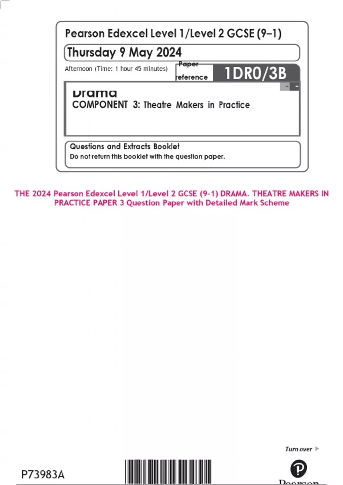 THE 2024 Pearson Edexcel Level 1/Level 2 GCSE (9–1) DRAMA. THEATRE MAKERS IN PRACTICE PAPER 3 Question Paper with Detailed Mark Scheme