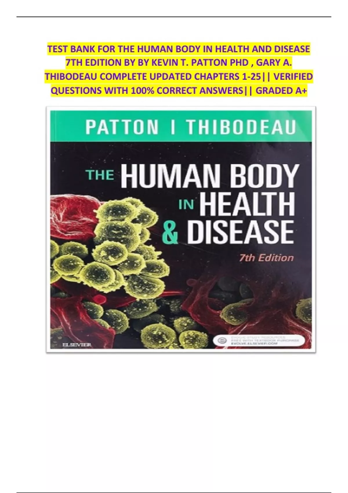 TEST BANK FOR THE HUMAN BODY IN HEALTH AND DISEASE 7TH EDITION BY BY KEVIN T. PATTON PHD , GARY A. THIBODEAU COMPLETE UPDATED CHAPTERS 1-25|| VERIFIED QUESTIONS WITH 100% CORRECT ANSWERS|| GRADED A+