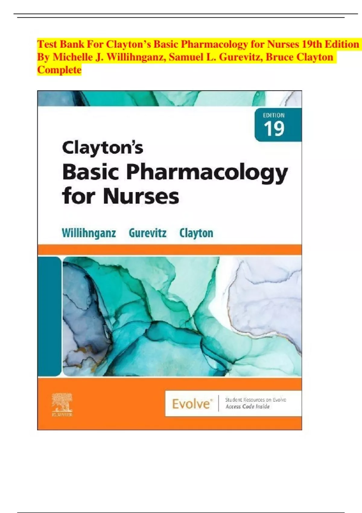 ,Test Bank For Clayton’s Basic Pharmacology for Nurses 19th Edition
