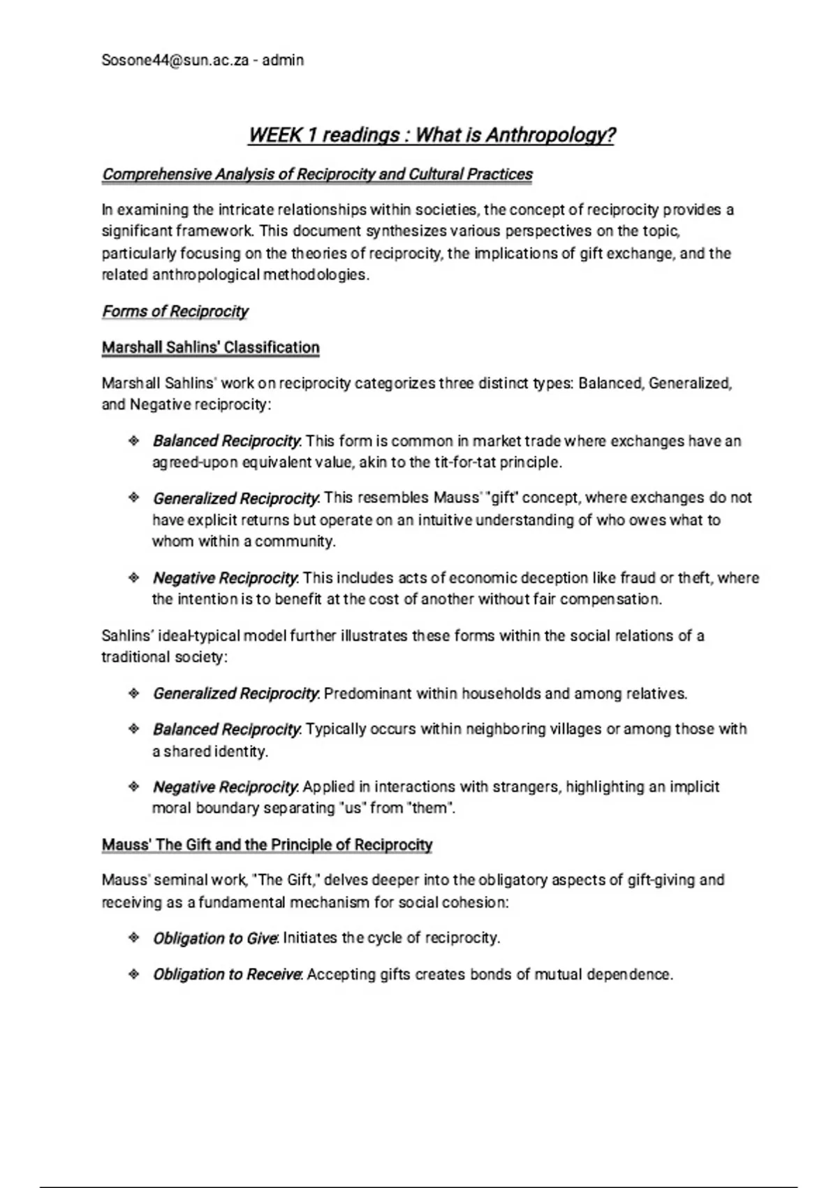 particularly focusing on the theories of reciprocity, the implications of gift exchange, and the