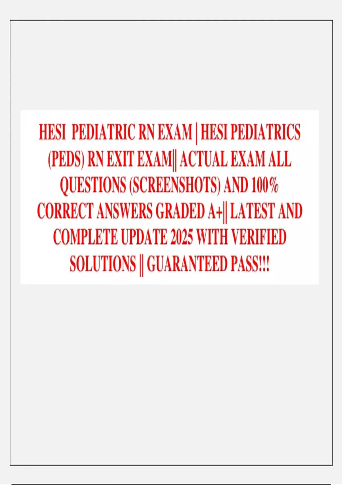 HESI PEDIATRIC RN EXAM | HESI PEDIATRICS (PEDS) RN EXIT EXAM|| ACTUAL EXAM ALL QUESTIONS (SCREENSHOTS) AND 100% CORRECT ANSWERS GRADED A+|| LATEST AND COMPLETE UPDATE 2025 WITH VERIFIED SOLUTIONS || GUARANTEED PASS!!!