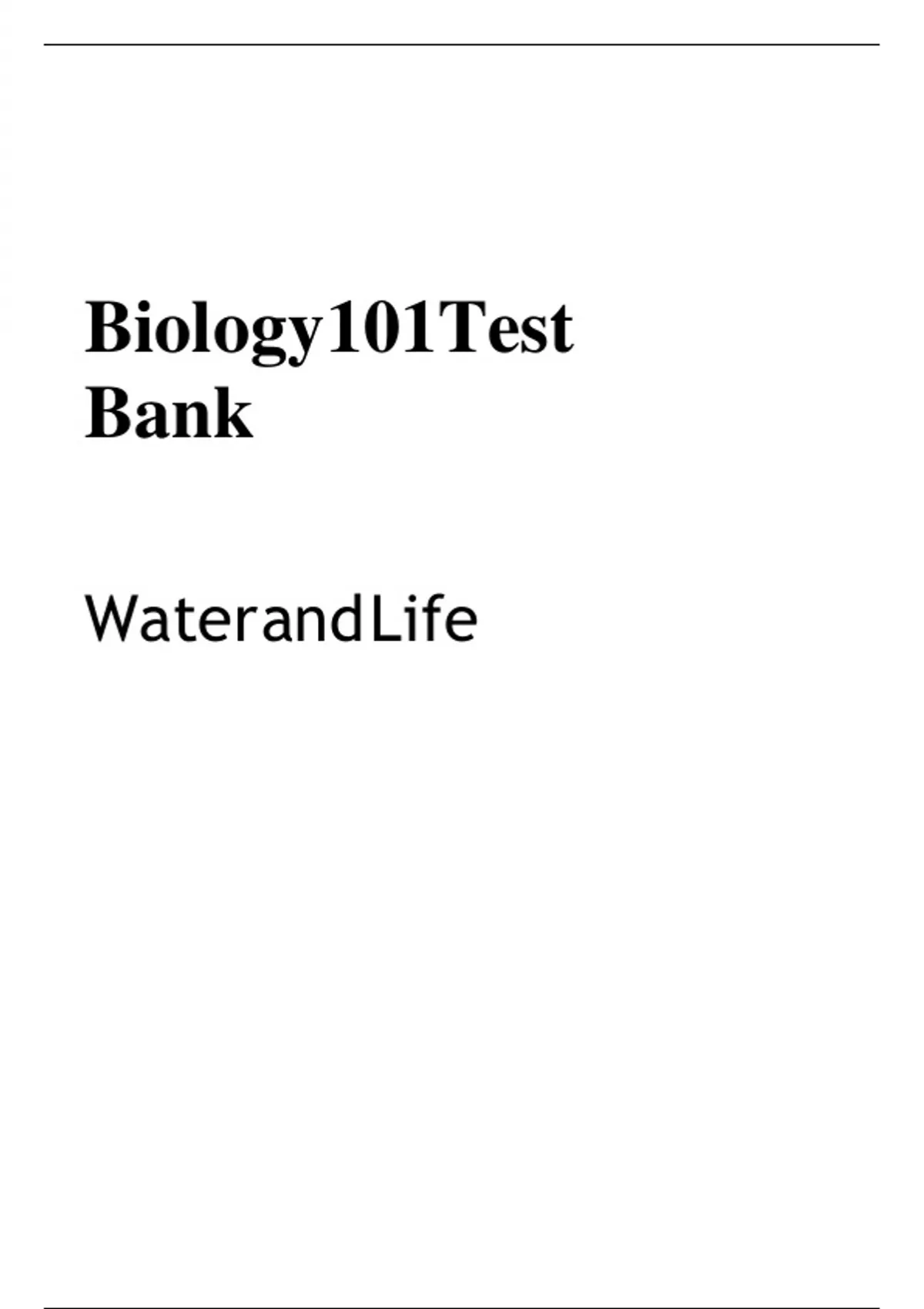 Biology 101 Test Bank Water and Life