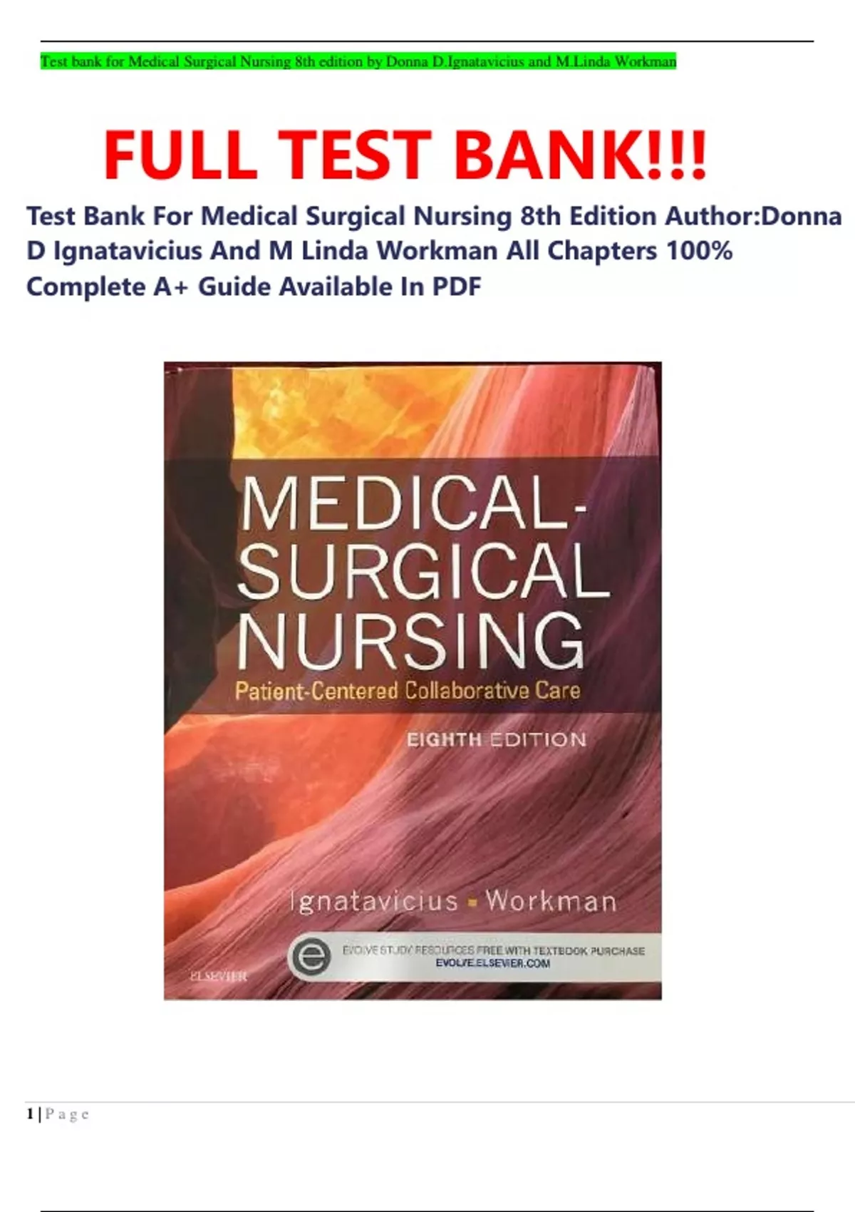 D Ignatavicius And M Linda Workman All Chapters 100%