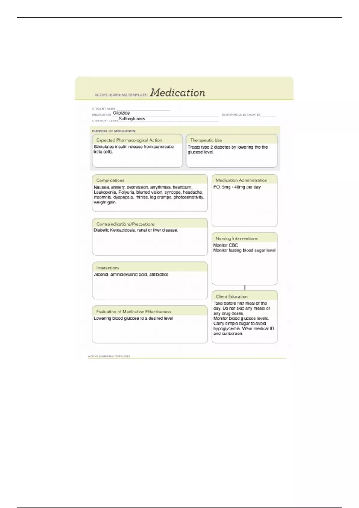 This is a comprehensive and detailed ATI medication template on;Glipizide for RNSG 1533. An Essential Study Resource just for YOU!!