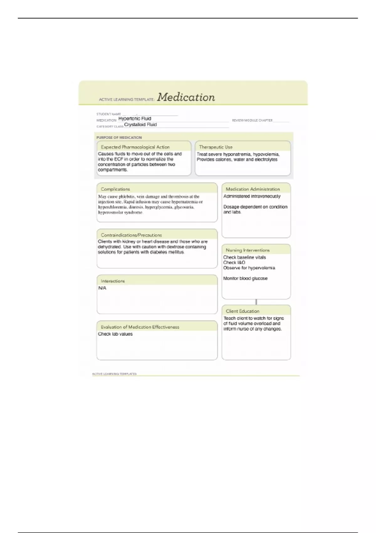 This is a comprehensive and detailed ATI medication template on; Hypertonic Fluid for RNSG 1533. An Essential Study Resource just for YOU!!
