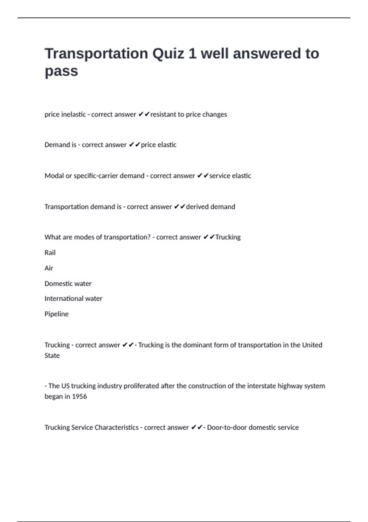 Trucking - correct answer ✔✔- Trucking is the dominant form of transportation in the United