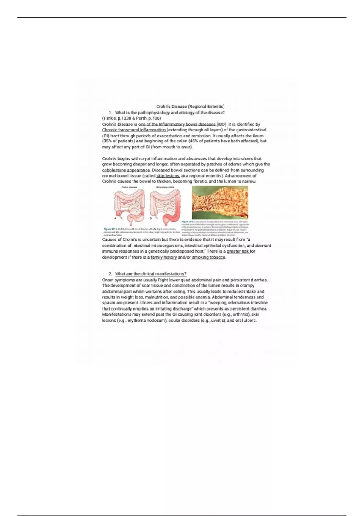 normal bowel tissue (called skip lesions, aka regional enteritis). Advancement of