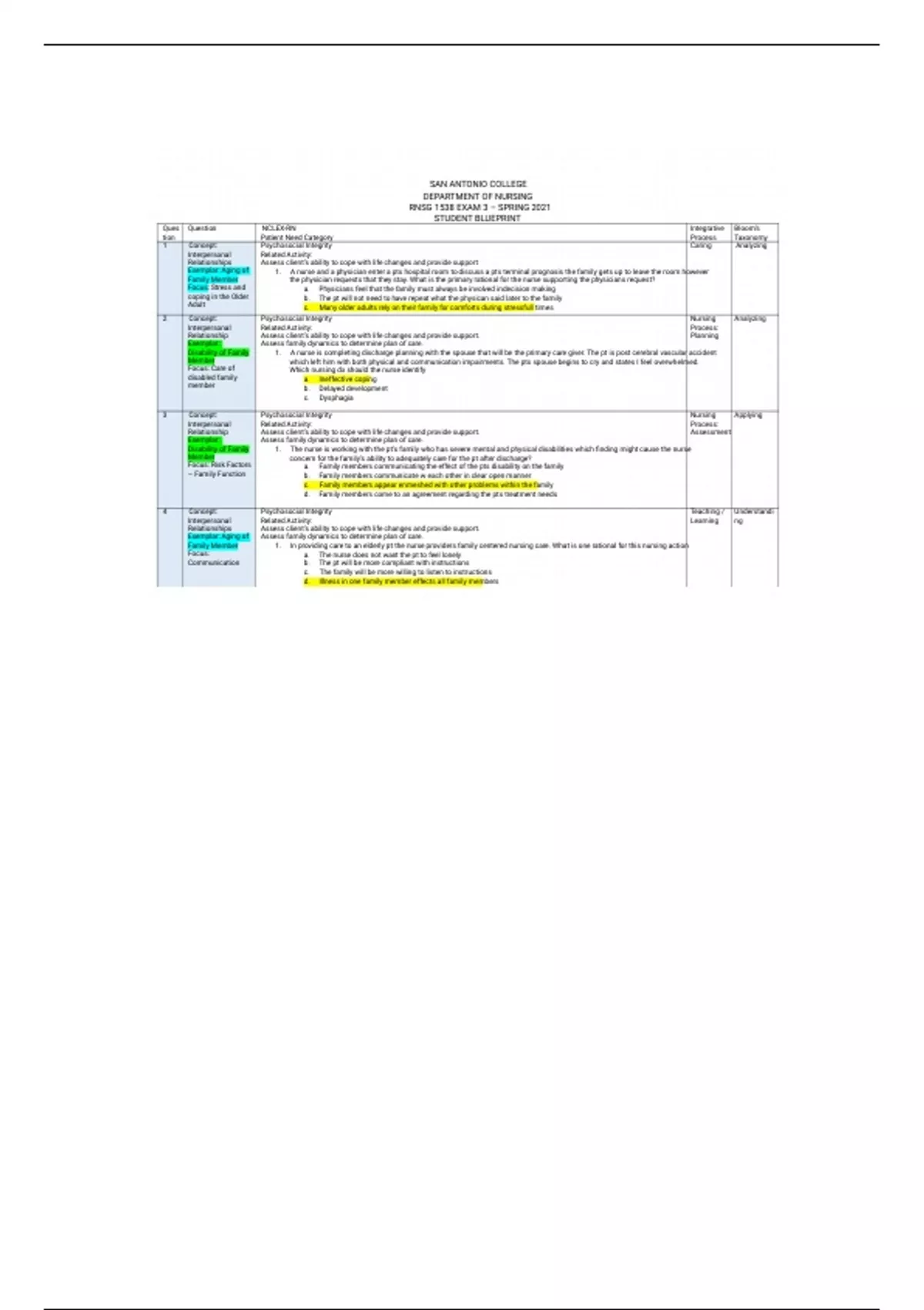 2 Concept: Psychosocial Integrity Nursing Analyzing