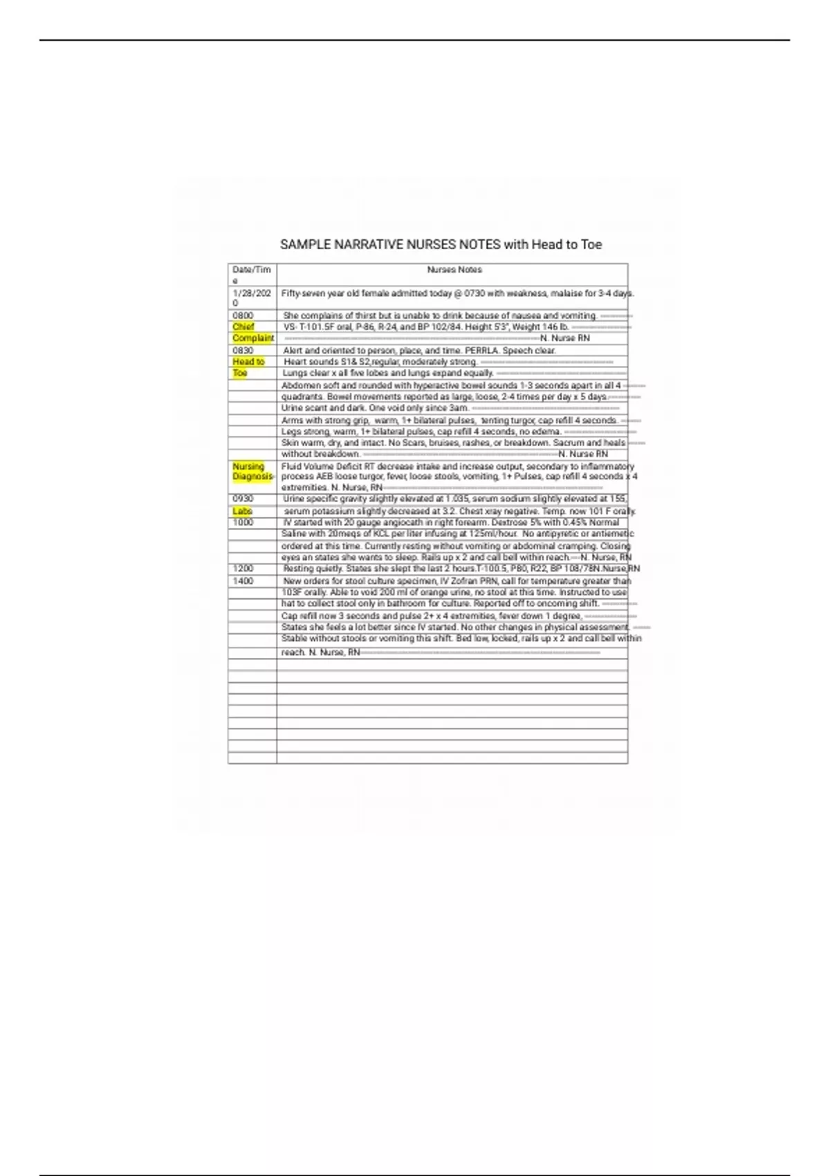 Sample Narrative Nurses Notes with Head to Toe.
