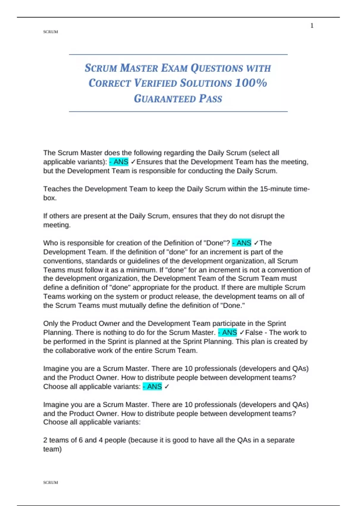 applicable variants): - ANS ✓Ensures that the Development Team has the meeting,