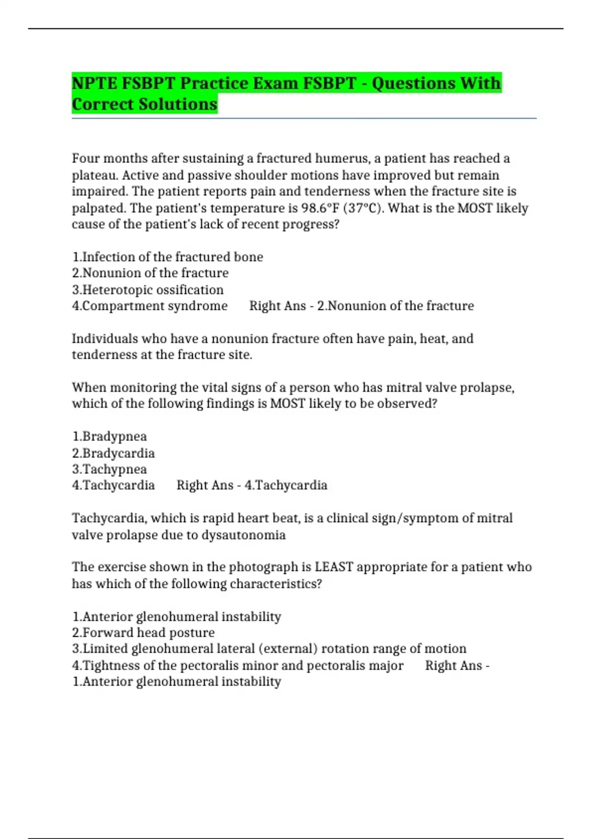 NPTE FSBPT Practice Exam FSBPT - Questions With