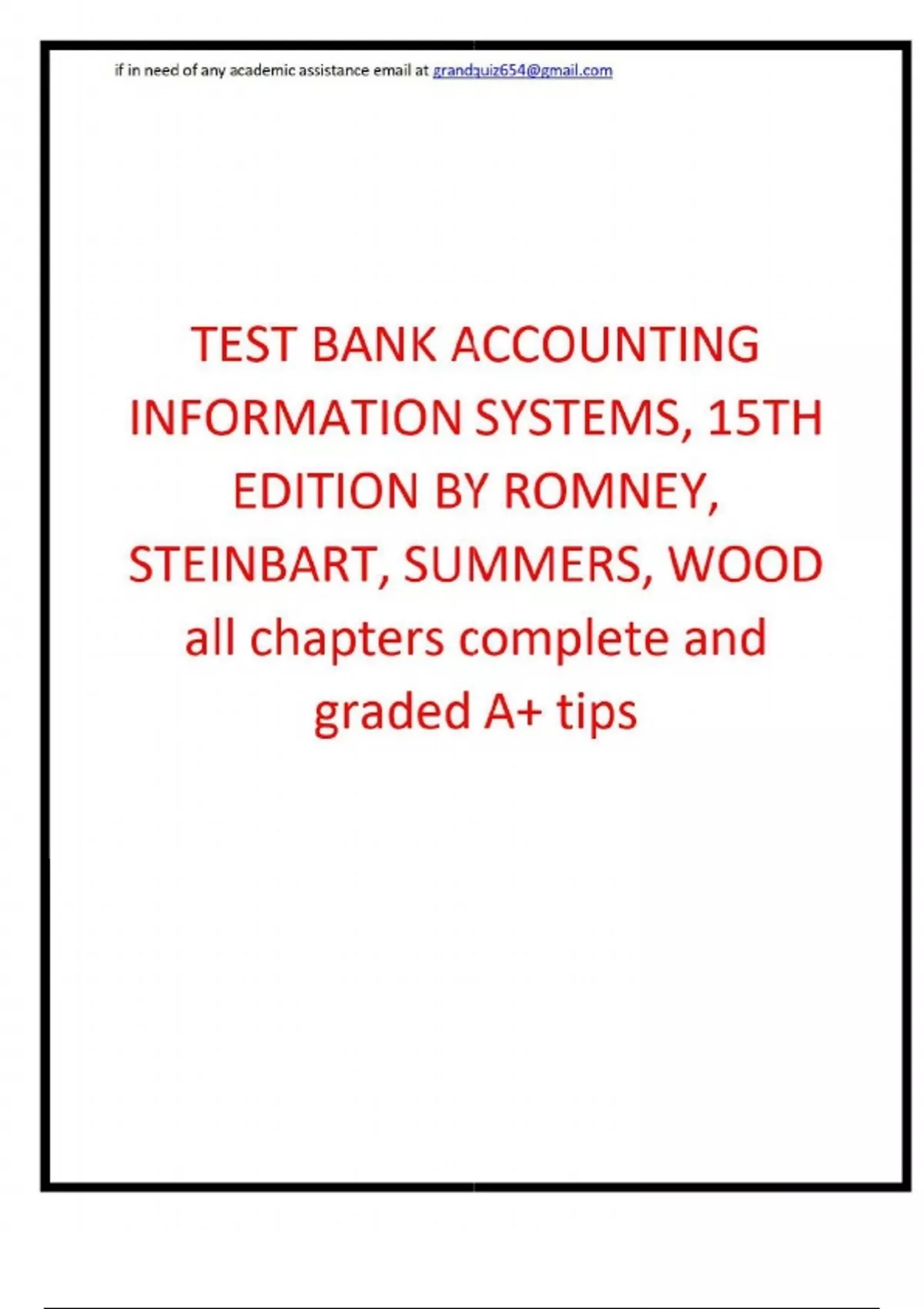 TEST BANK ACCOUNTING INFORMATION SYSTEMS, 15TH EDITION BY ROMNEY, STEINBART, SUMMERS, WOOD all chapters complete and graded A+ tips_compressed.pdf