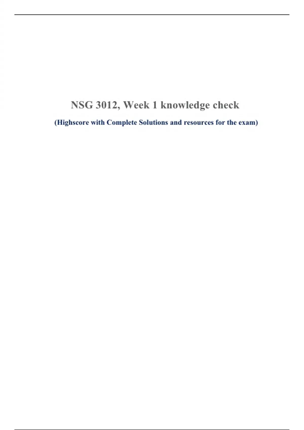 NSG 3012, Week 1 knowledge check (Highscore with Complete Solutions and resources for the exam)