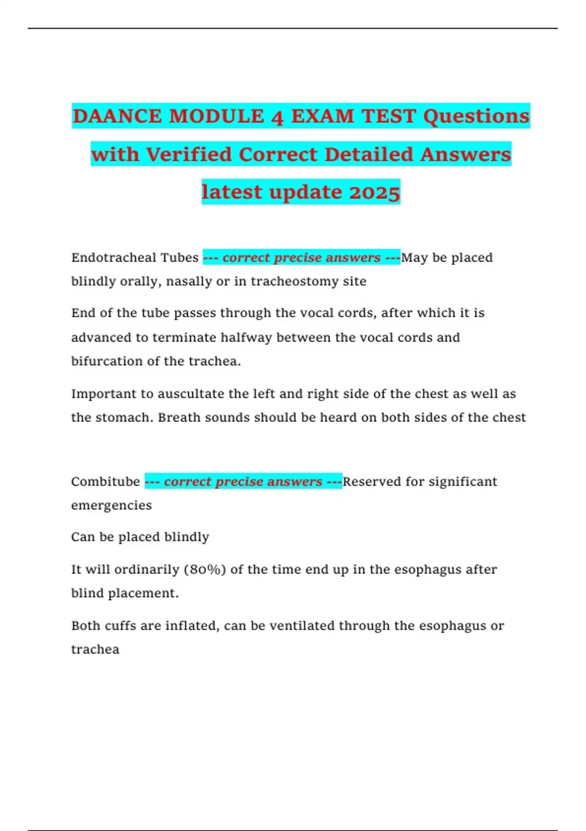 Combitube --- correct precise answers ---Reserved for significant