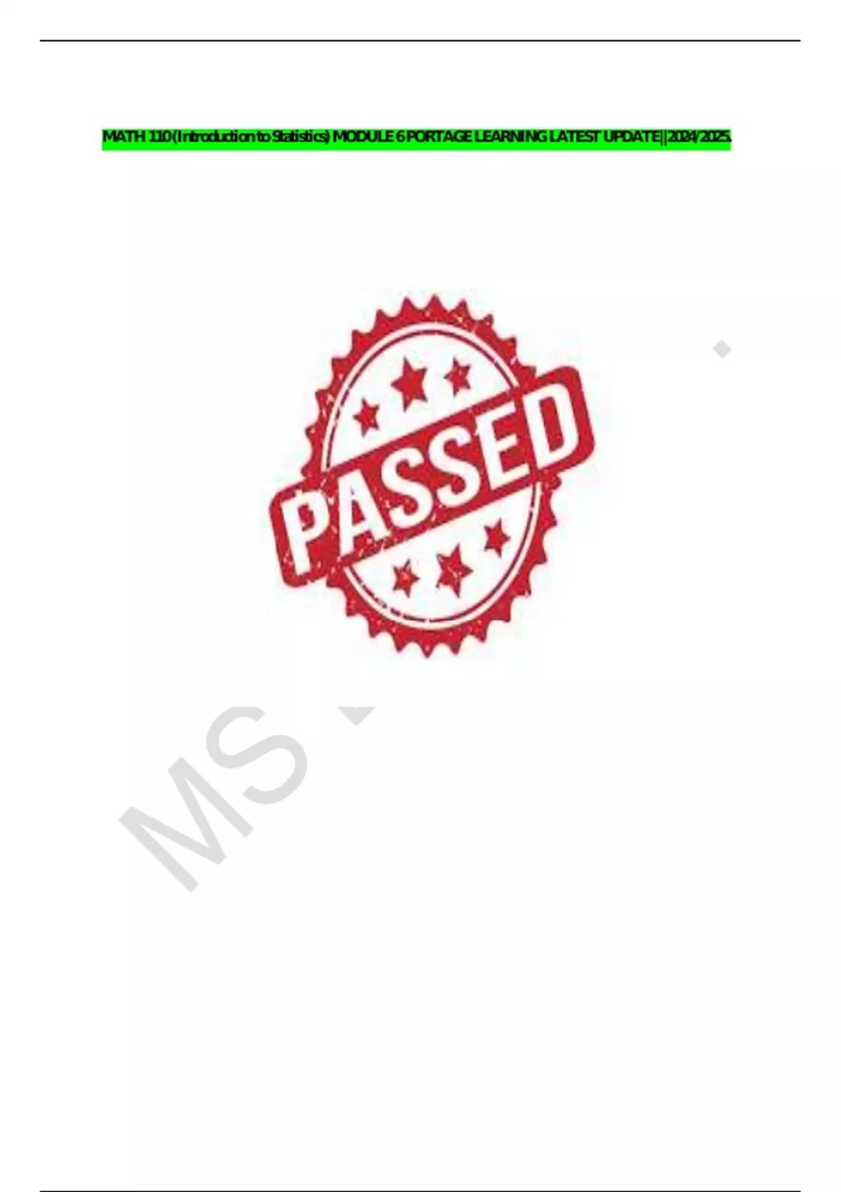 MATH 110 (Introduction to Statistics) MODULE 6 PORTAGE LEARNING LATEST UPDATE||2024/2025.