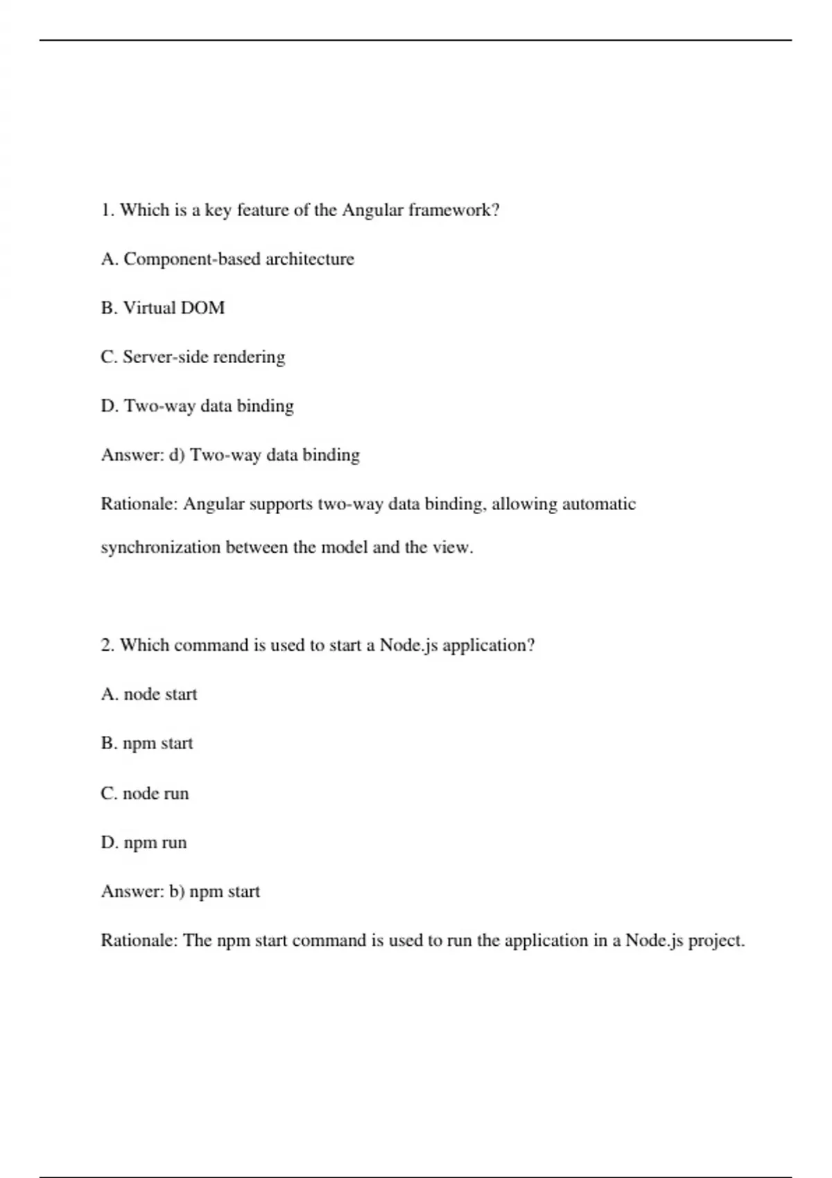 Rationale: Angular is a frontend JavaScript framework used for building dynamic,