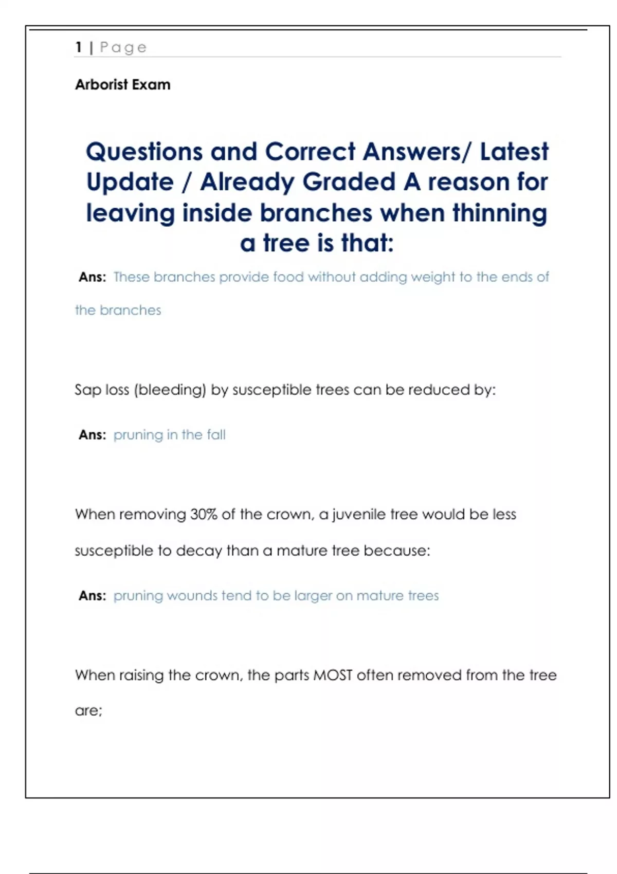 Arborist Exam Questions and Correct Answers/ Latest Update / Already Graded
