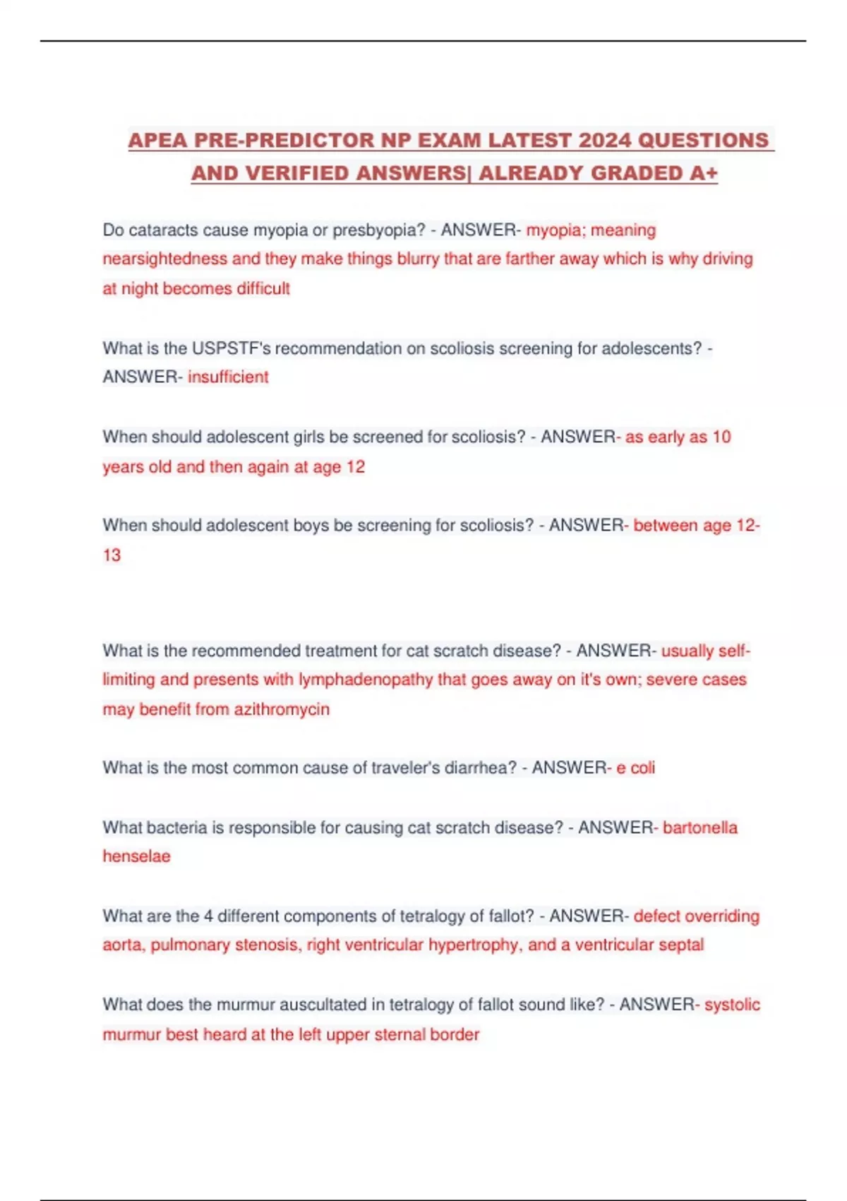 APEA PRE-PREDICTOR NP EXAM LATEST 2024 QUESTIONS AND VERIFIED ANSWERS| ALREADY GRADED A