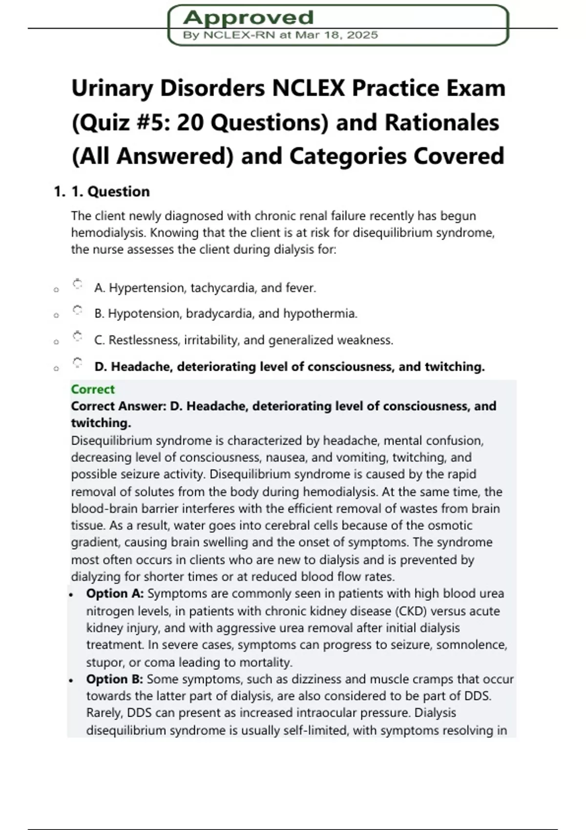 hemodialysis. Knowing that the client is at risk for disequilibrium syndrome,