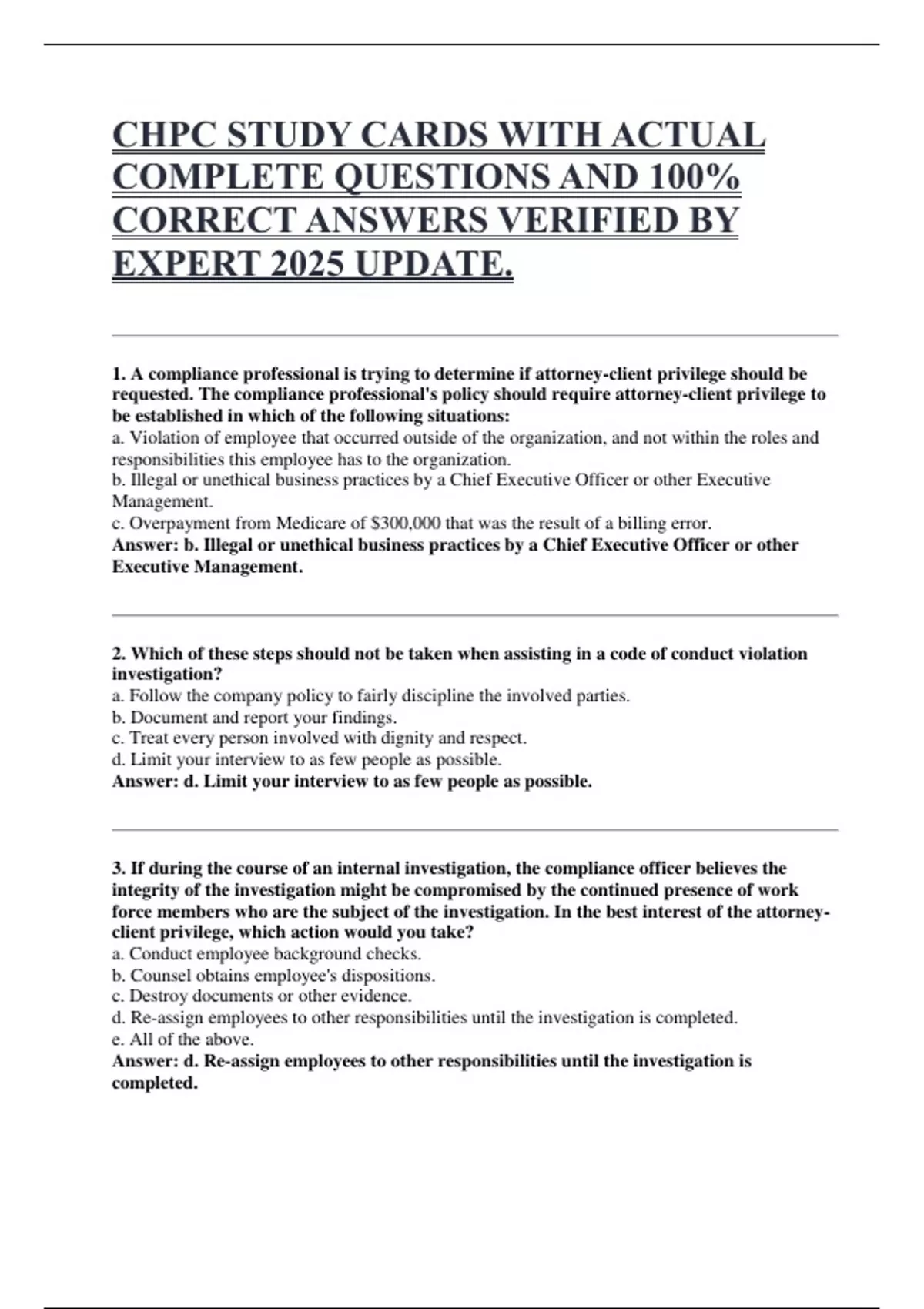 1. A compliance professional is trying to determine if attorney-client privilege should be