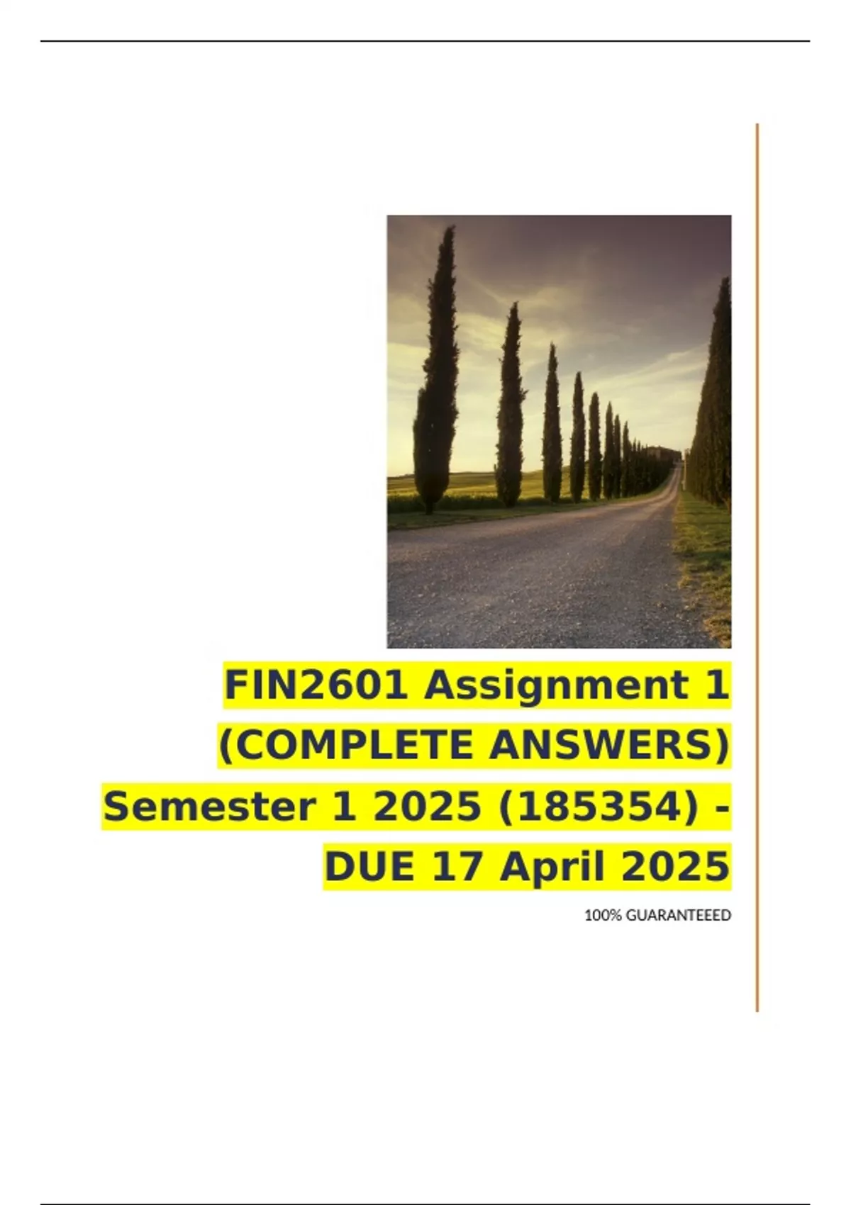 FIN2601 Assignment 1 (COMPLETE ANSWERS) Semester 1 2025 (185354) - DUE 17 April 2025