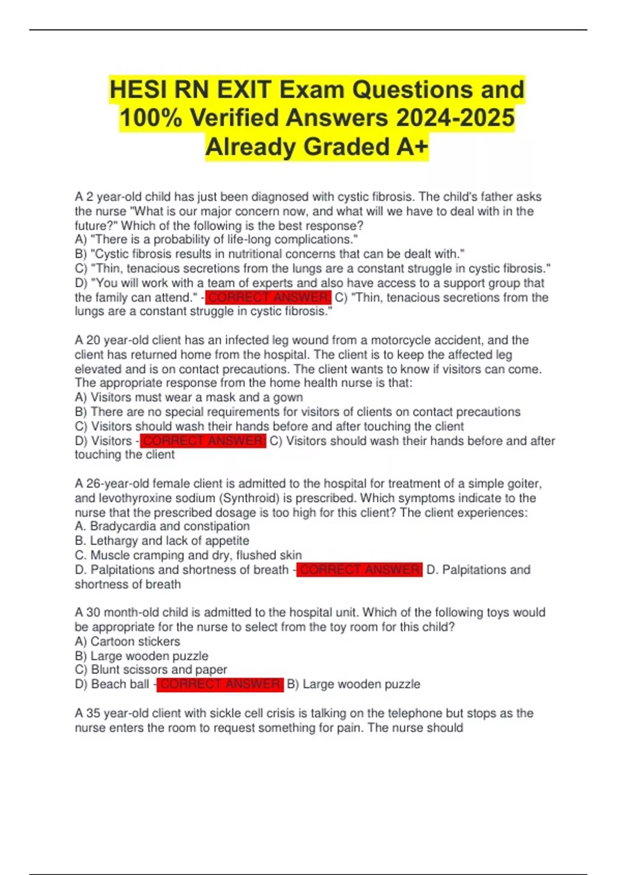 HESI RN EXIT Exam Questions and 100% Verified Answers Already Graded A+