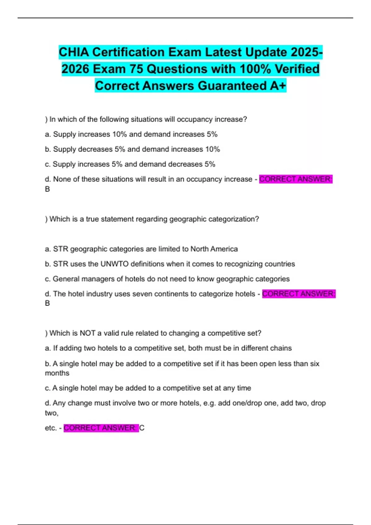 CHIA Certification Exam Latest Update Exam 75 Questions with 100% Verified Correct Answers Guaranteed A+
