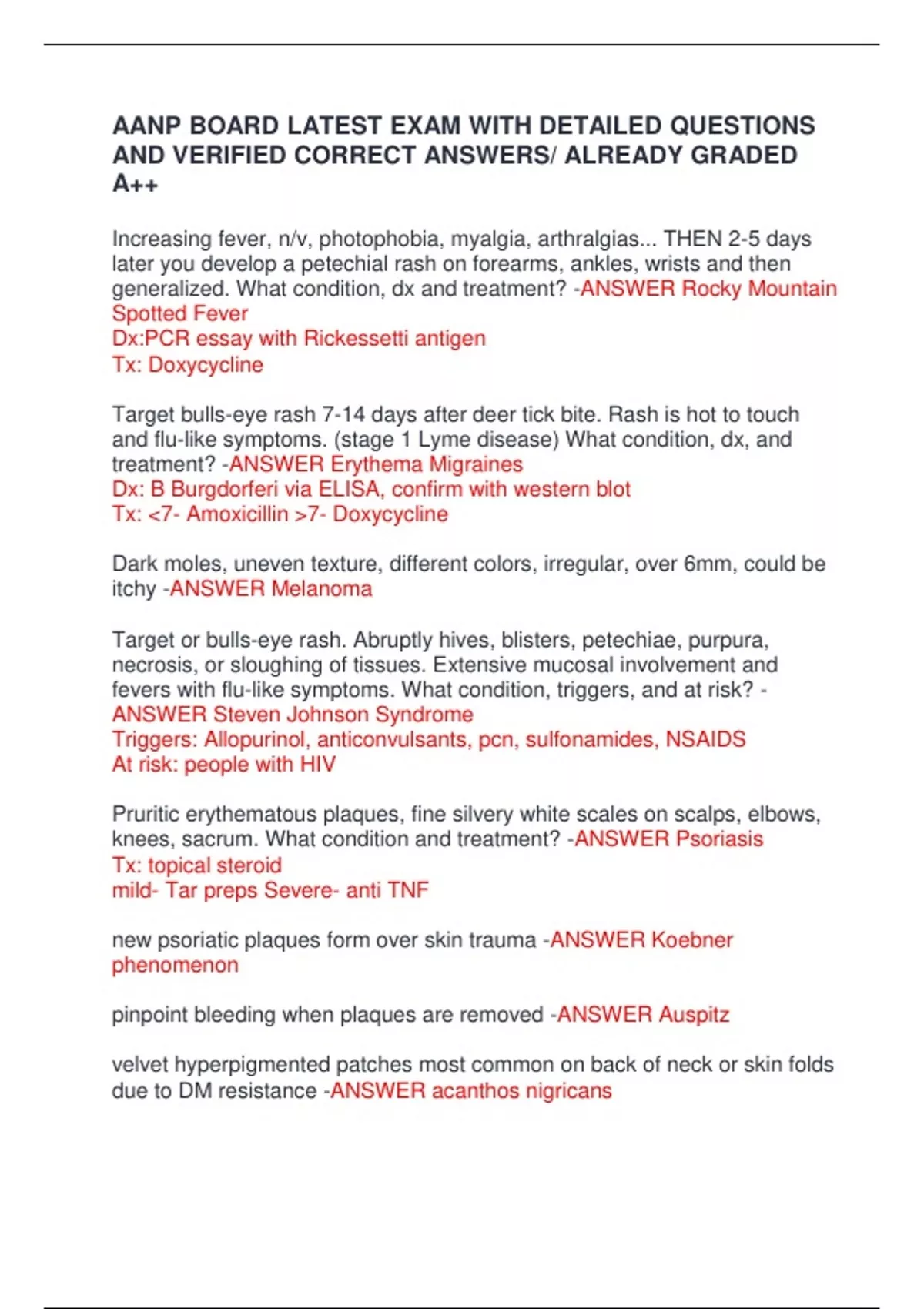 AANP BOARD LATEST EXAM WITH DETAILED QUESTIONS AND VERIFIED CORRECT ANSWERS/ ALREADY GRADED A++ AANP BOARD LATEST EXAM WITH DETAILED QUESTIONS AND VERIFIED CORRECT ANSWERS/ ALREADY GRADED A++