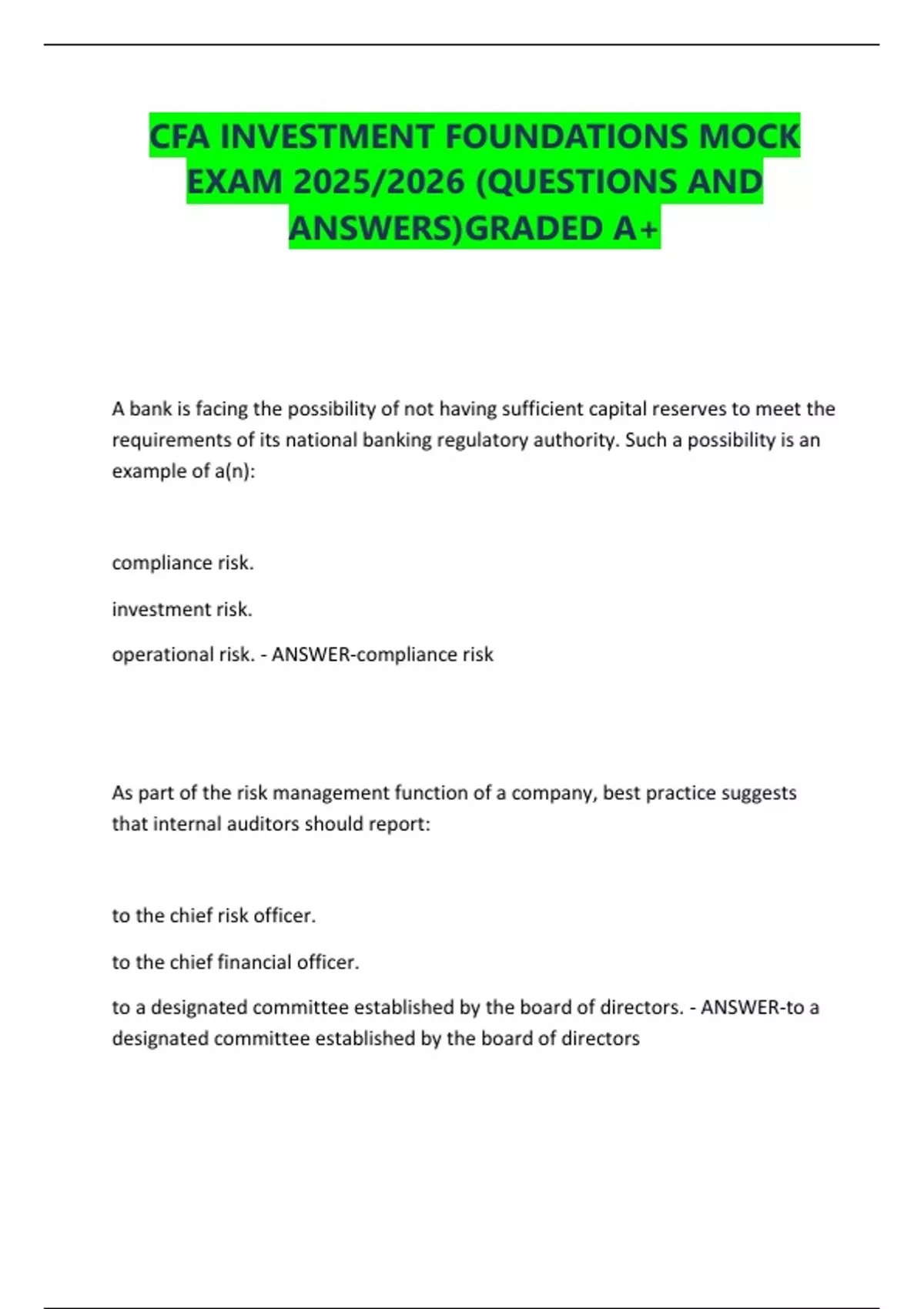 CFA INVESTMENT FOUNDATIONS MOCK EXAM 2025 (QUESTIONS AND ANSWERS)GRADED A+