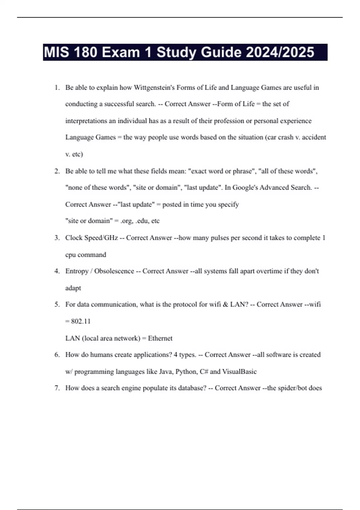 MIS 180 Exam 1 Study Guide 2024/2025