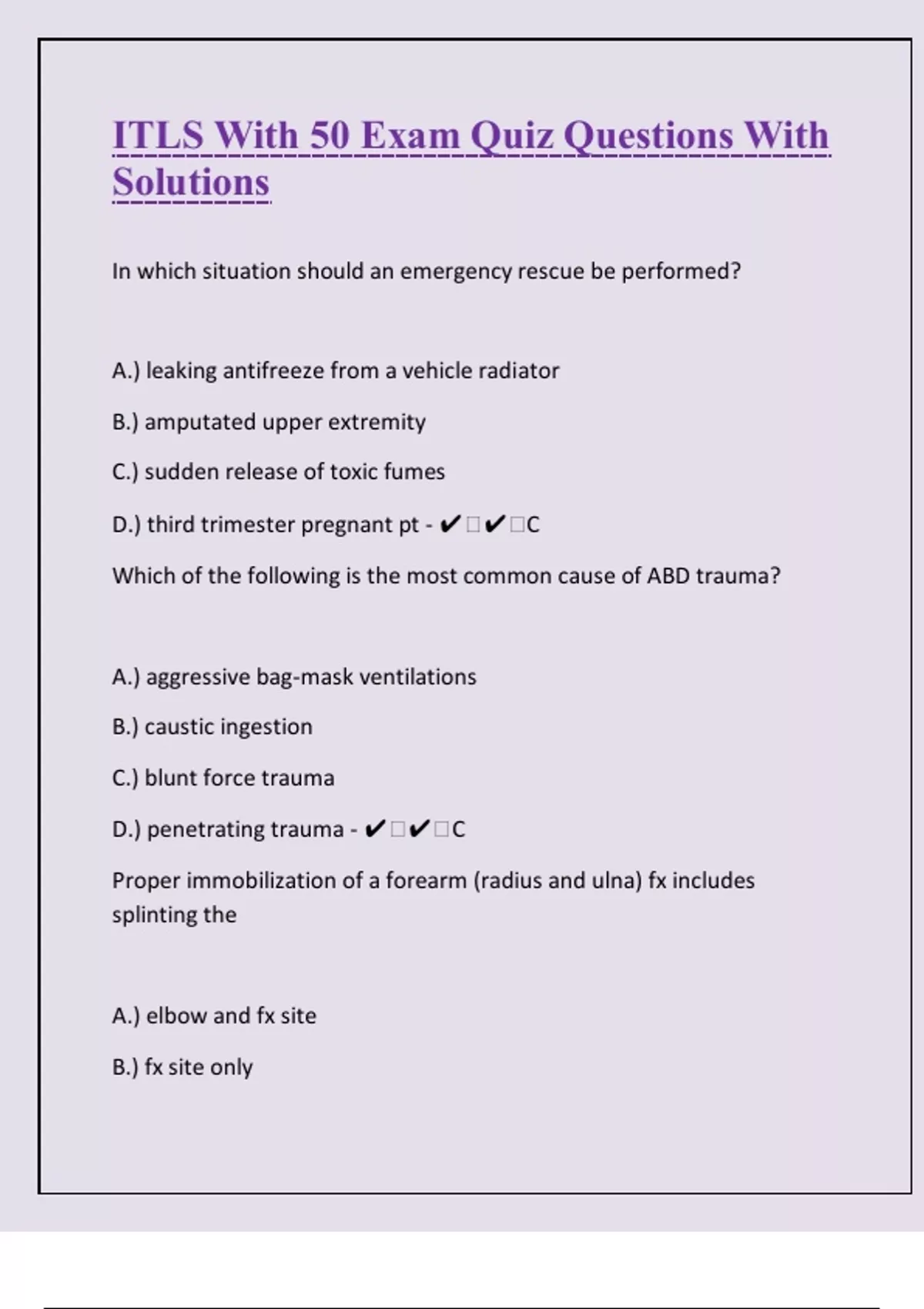 ITLS With 50 Exam Quiz Questions With Solutions| Verified And Correct
