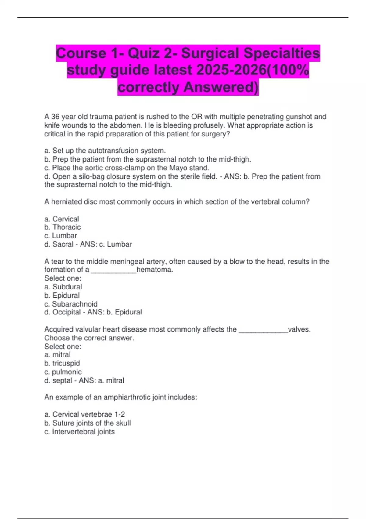 Course 1- Quiz 2- Surgical Specialties