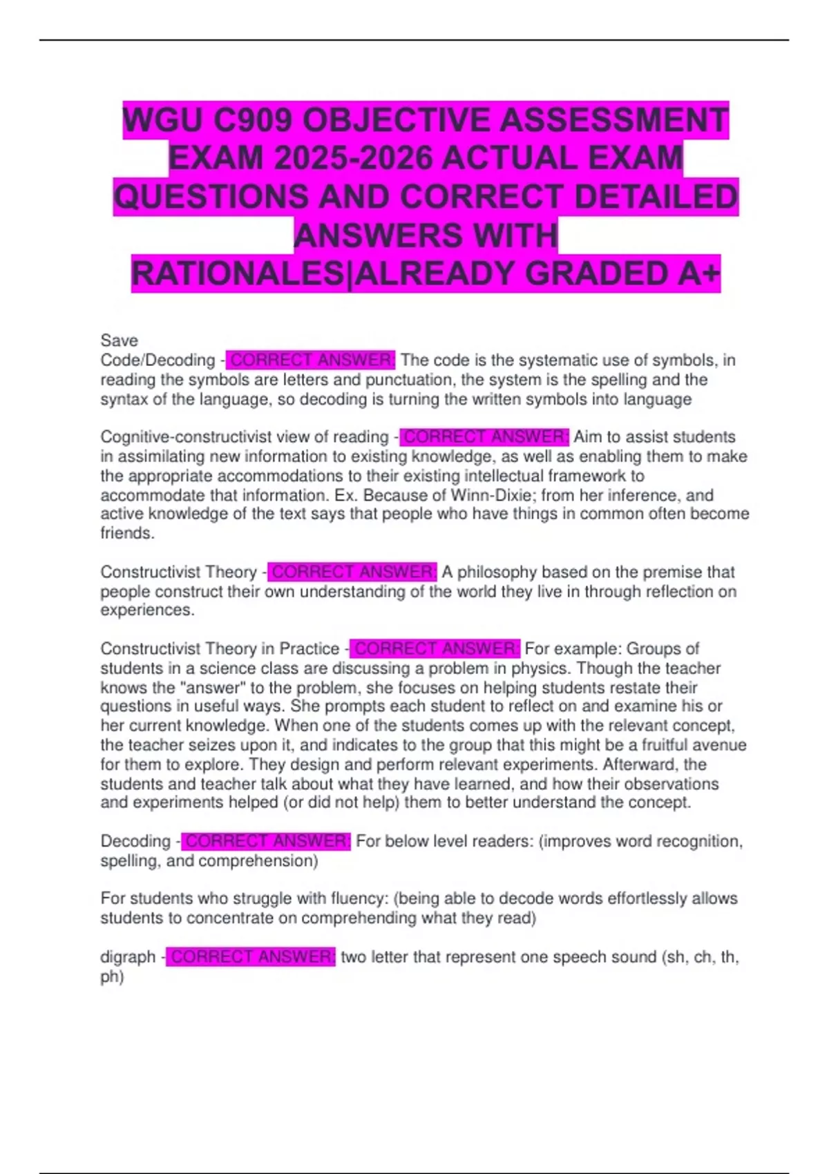 WGU C909 OBJECTIVE ASSESSMENT EXAM ACTUAL EXAM QUESTIONS AND CORRECT DETAILED ANSWERS WITH RATIONALES|ALREADY GRADED A+