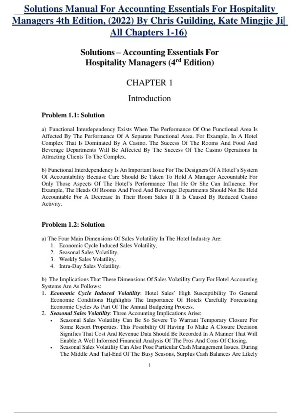 , Accounting Essentials for Hospitality Managers (C. Guilding) Solutions