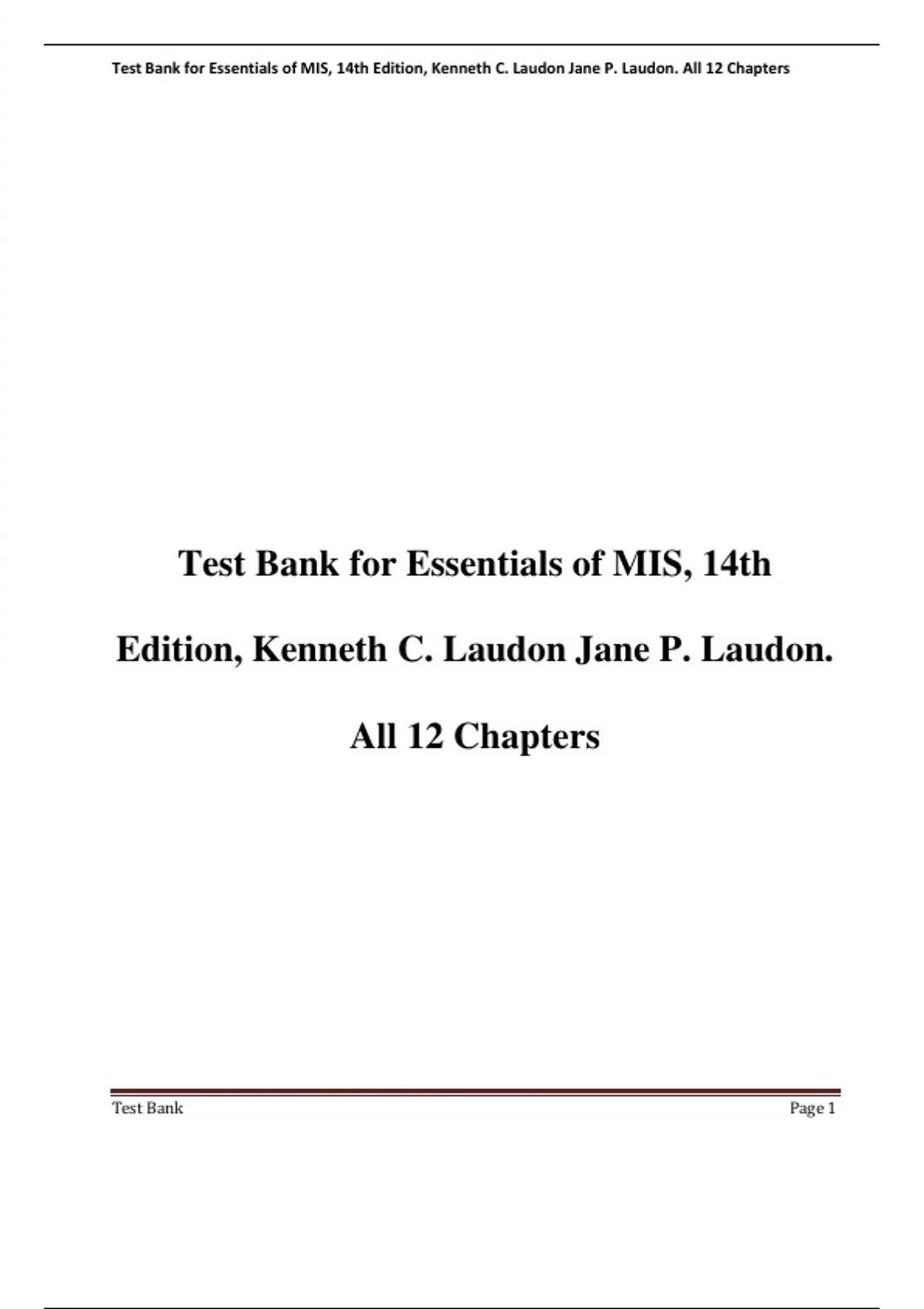Test Bank for Essentials of MIS, 14th Edition, Kenneth C. Laudon Jane P. Laudon. All 12 Chapters