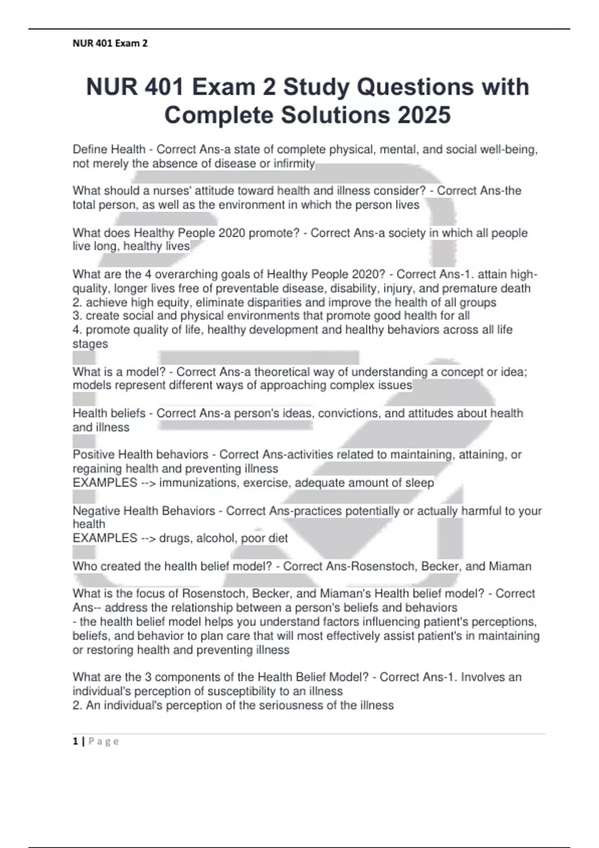 NUR 401 Exam 2 Study Questions with Complete Solutions 2025
