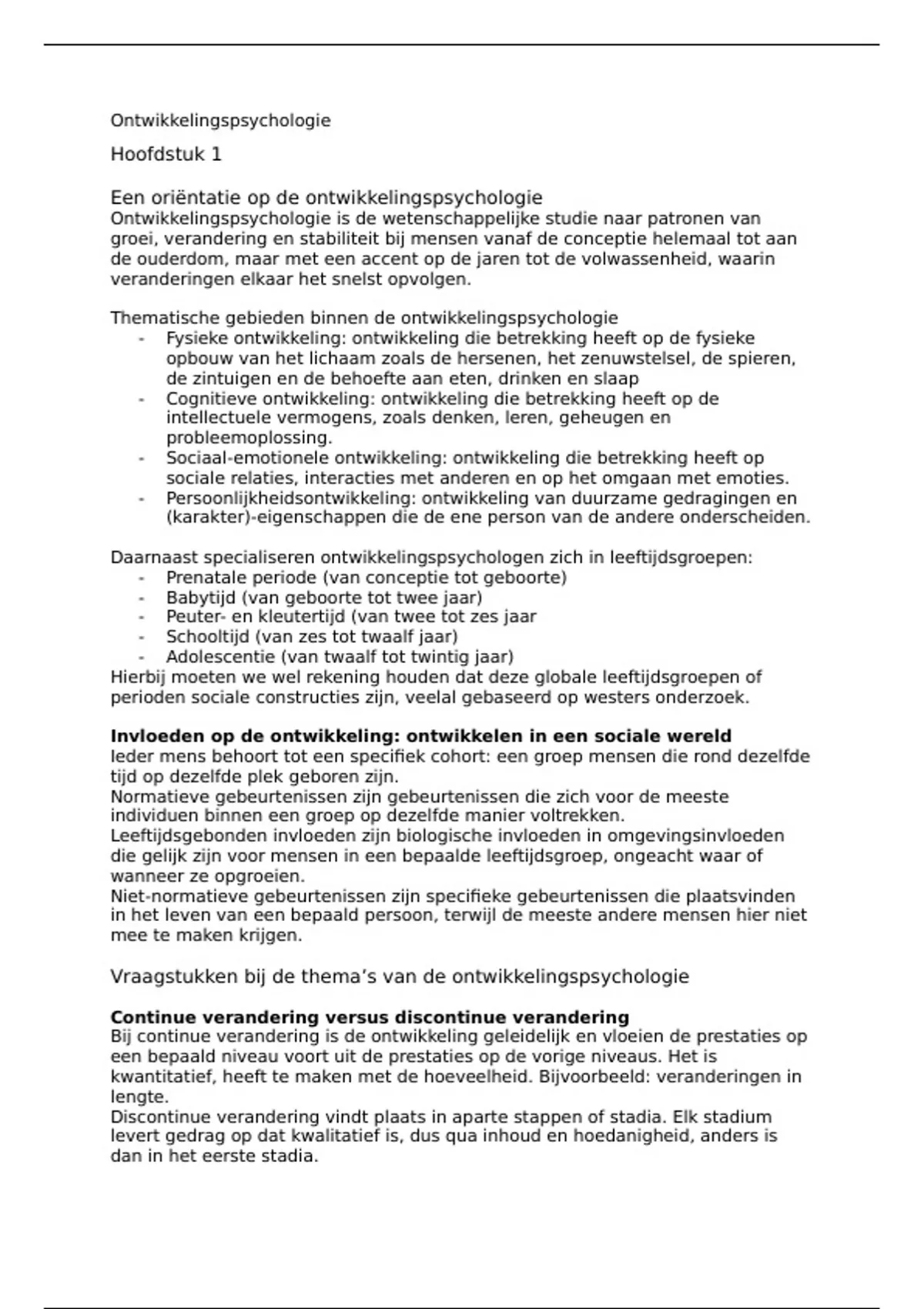 Thematische gebieden binnen de ontwikkelingspsychologie