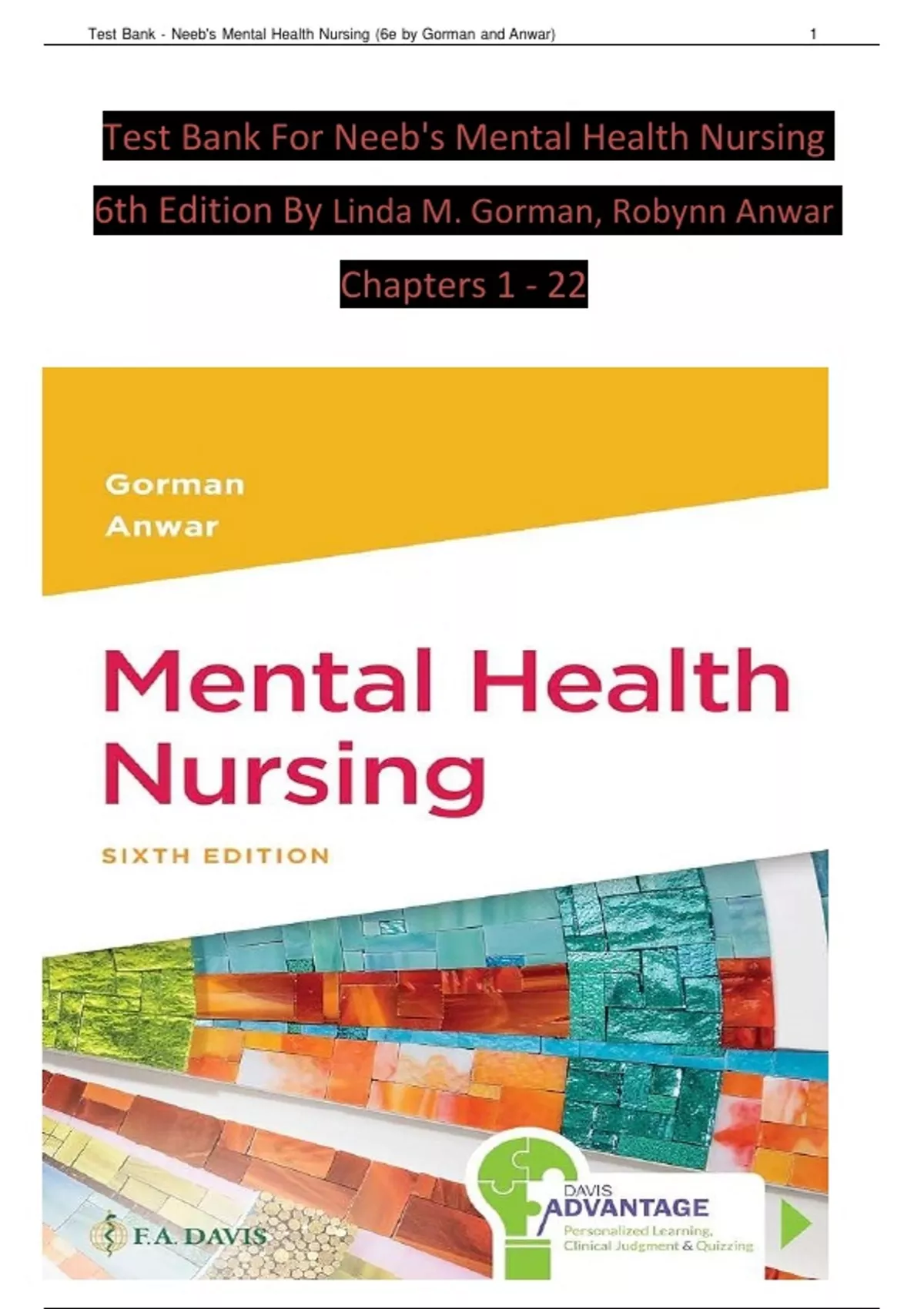 Test Bank For Neeb's Mental Health Nursing 6th Edition By Linda M. Gorman, Robynn Anwar Chapters 1 - 22