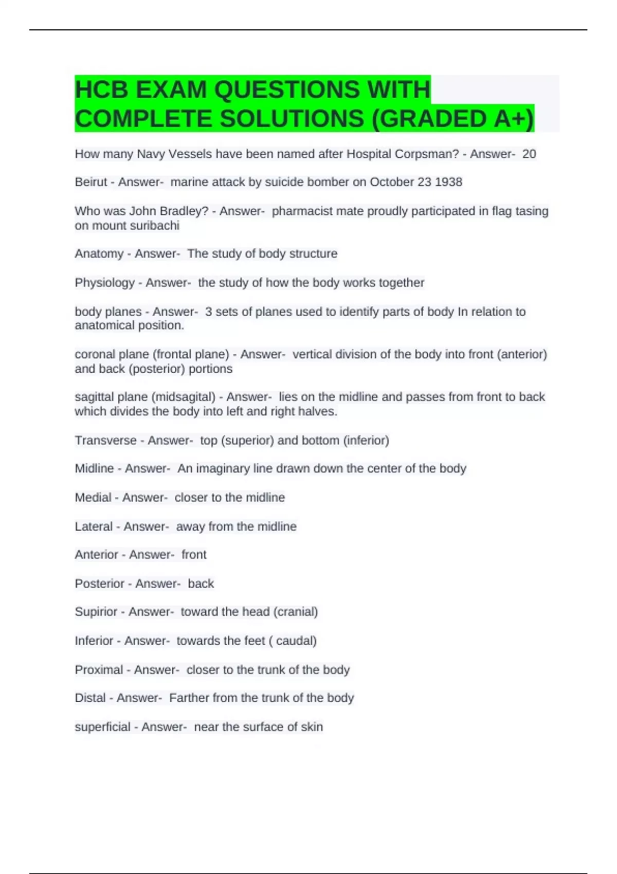 HCB EXAM QUESTIONS WITH