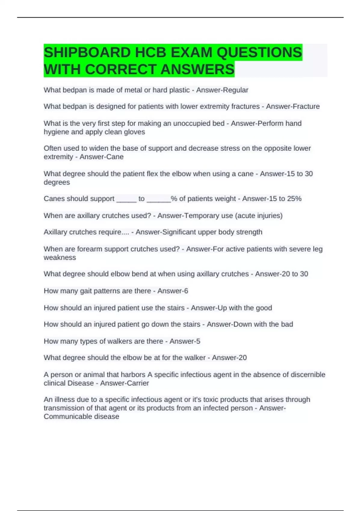 SHIPBOARD HCB EXAM QUESTIONS